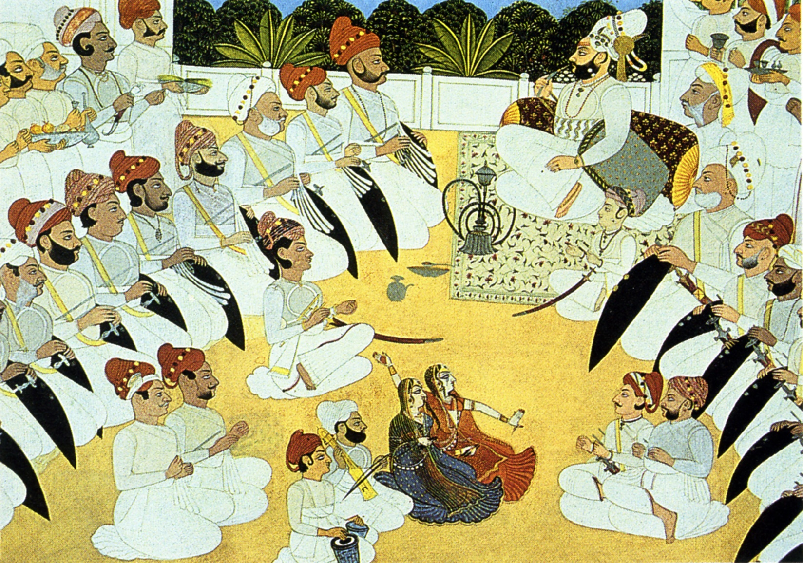 以上、タブラ発明および音楽シーンへの登場の時期を見てきました。1750年頃と言えば西洋では大バッハが死んで、息子たちが新しい音楽に邁進している頃、やがて古典派の時代を迎える頃です。日本では江戸中期、三味線や琴、尺八の新しい曲が生み出されている頃、こうしてみると世界の動きというのはなぜか連動しているような気がしてきます。さて、もう一つ今までのイメージと違う点を挙げるとすれば、タブラが表舞台へ登場することになる時代背景についてです。18世紀になってなぜドゥルパッドからカヤールへと変化したのか。これは間違っているというのではなく、一般的に思われてきた「きらびやかで豪華な宮廷」で繰り広げられた芸術、音楽の中から生まれてきた新しい動き、というものとは少し違うのではないか、ということです。