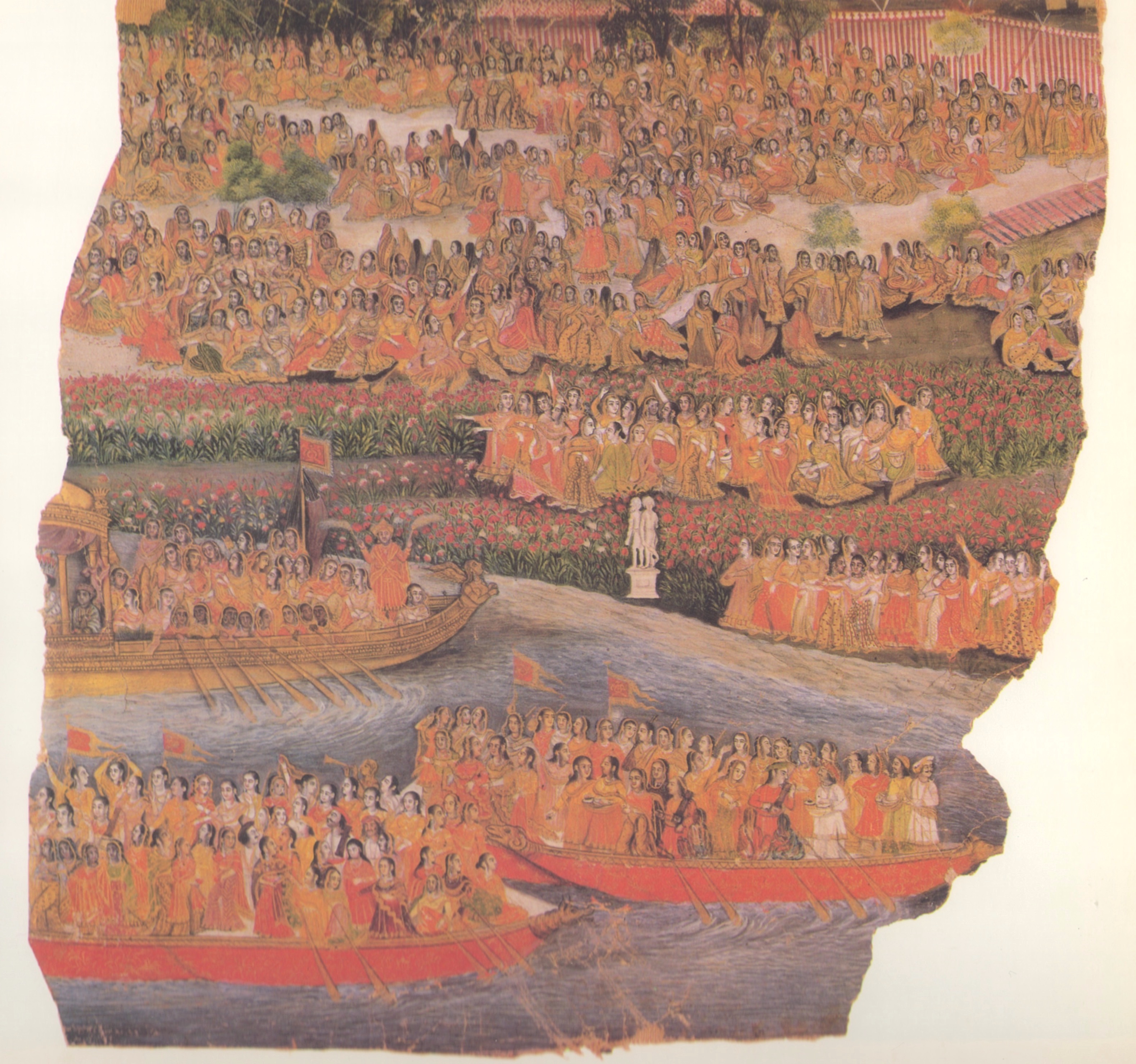 この絵の下の方では出迎えの踊りや音楽が展開しますが、タブラはやはり見られません。