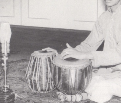 さて、デリーのスィッダール・カーン(Siddhar Khan スダール・カーンとも)によって確立された、と一般に言われているタブラを使った新奏法は、それまでのパッカワージの奏法をもとにしながらも、新しく生み出されたカヤール、女性の軽やかなステップを思わせるようなリズムをもつ音楽にうまくマッチする、クリアーで繊細で軽快な響き、そして豊かな即興性を持っていました。技術的な最も大きな違いは、指遣いの違い=人差し指と中指を1本ずつで打つ奏法とクラーボール(開放音)よりバンドボール(閉鎖音)の重視、また、即興的展開に重点を置いたカイダ(Kaida)と呼ばれる演奏形式などの発明です。